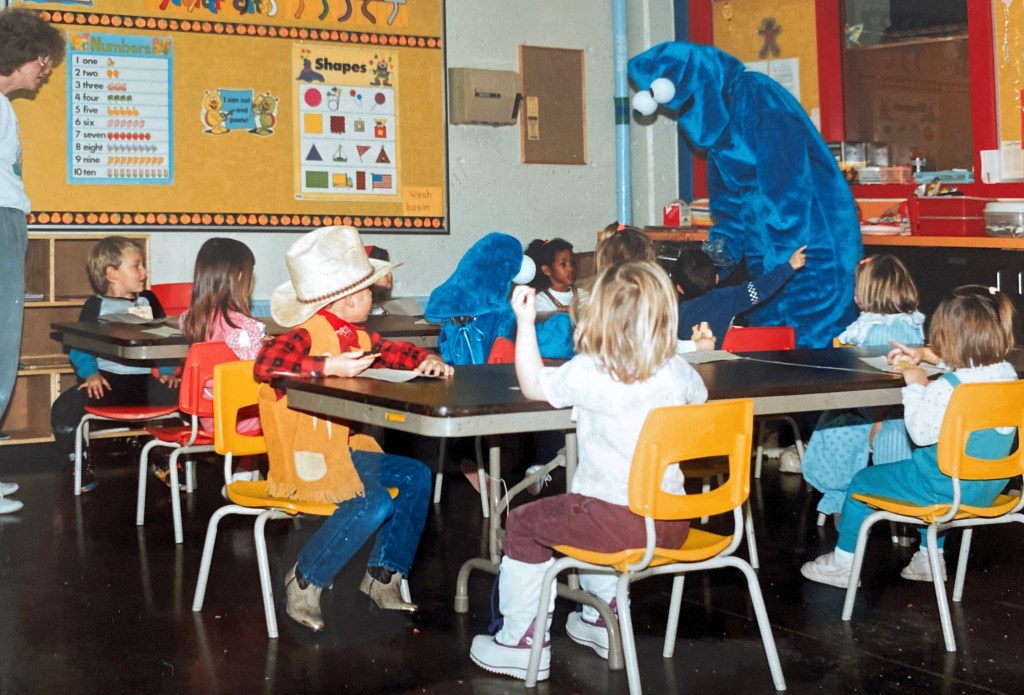 About the time when my Dad came to my ECS class in costume to hand out cookies for Halloween