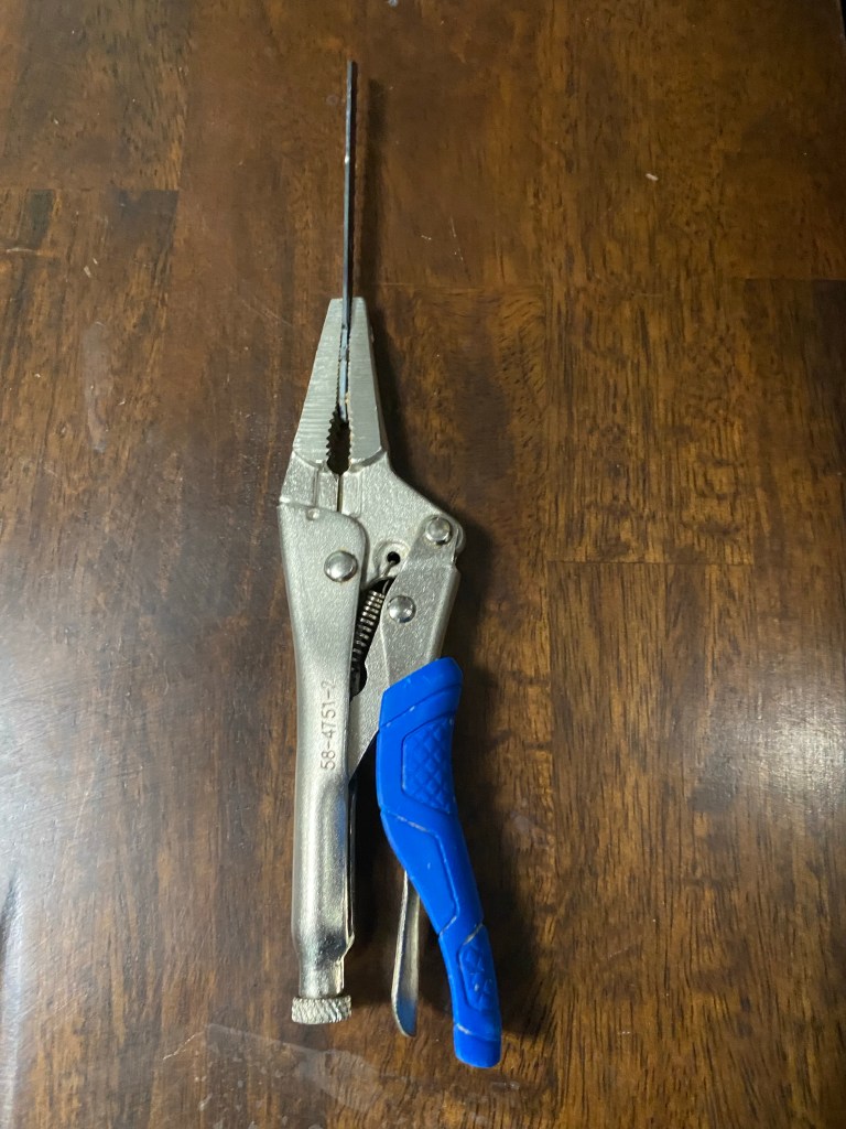 This vice grip plier tool (no clue the name of it) and a sawzall blade
