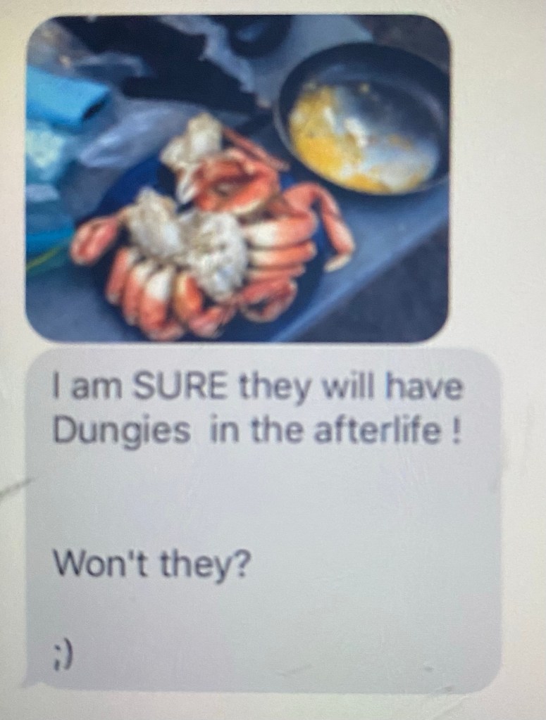 Hope your enjoying the crab Dad